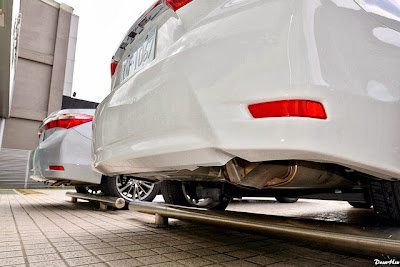 大夥躍躍欲試的接續出發,看看 Corolla Altis 車尾設計有著縮小版 Camry 的感覺,尾燈組排列搭配 LED 辨識度非常好,Z 版的第三煞車燈崁於尾翼內。
