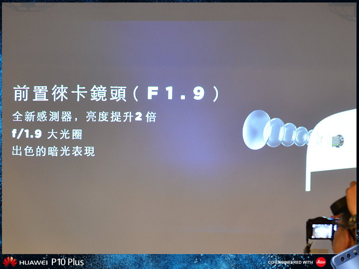P10 Plus 搭載徠卡認證 SUMMILUX 高階雙鏡頭,分別為 2000 萬黑白鏡頭與 1200 萬彩色鏡頭,光圈提升至 F1.8 大光圈,並支援 OIS 光學防手震及低光源拍攝,讓低光源拍攝性能和畫面銳利程度都能大幅提升。